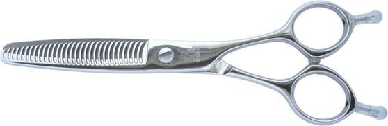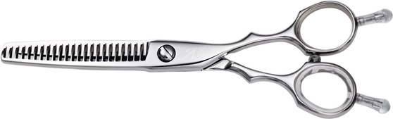 Eine wunderbare Modelierschere für eine Abnahme von 40%-50% des Haares. Perfekt für dickes Haar und schnelle Gewichtsabnahmen. Durch die grosse Ausdünnung der Haare mit einem Schnitt kann sie eine leichte Kante hinterlassen. Das Modell ist in zwei Varianten erhältlich.
